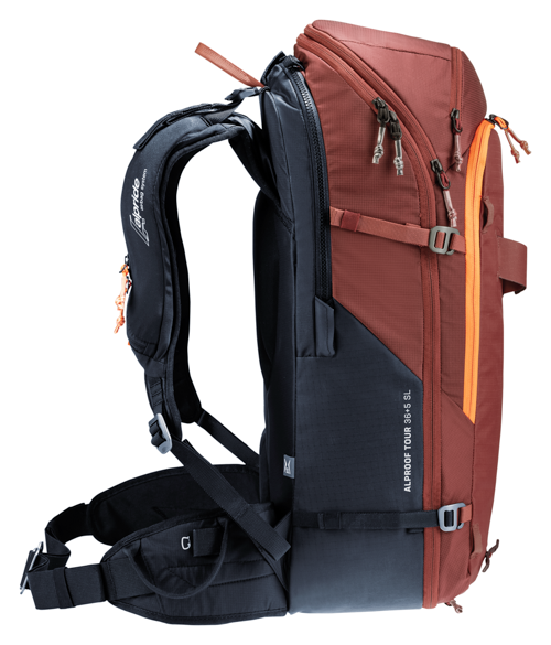 Der TÜV-geprüfte Alproof Tour SL ermöglicht dank Alpride E2 Lawinen-Airbag und neuester Superkondensator-Technologie eine schnelle, druckvolle und zuverlässige Auslösung auch bei niedrigen Temperaturen. Einfaches Handling, Mehrfachauslösung und ein schnell zugängliches Sicherheitsfach treffen auf hohen SL-Tragekomfort und körpernahen Sitz für kontrolliertes Agieren. Die Beinschlaufe verhindert das Verrutschen im Verschüttungsfall. Die Materialschlaufen, Befestigungsriemen und Roll-Top-Volumenerweiterung des Rucksacks ermöglichen maximale Flexibilität auf mehrtägigen Skidurchquerungen.